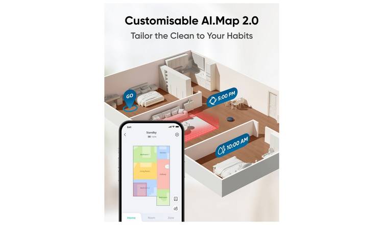 MopMaster 2.0 for Spotless Floors: With 180rpm and 1kg of downward pressure, the dual mop pads easily eradicate stains and leave you with floors that shine. When a carpet is detected, the mops automatically lift by 12mm to prevent it getting wet.